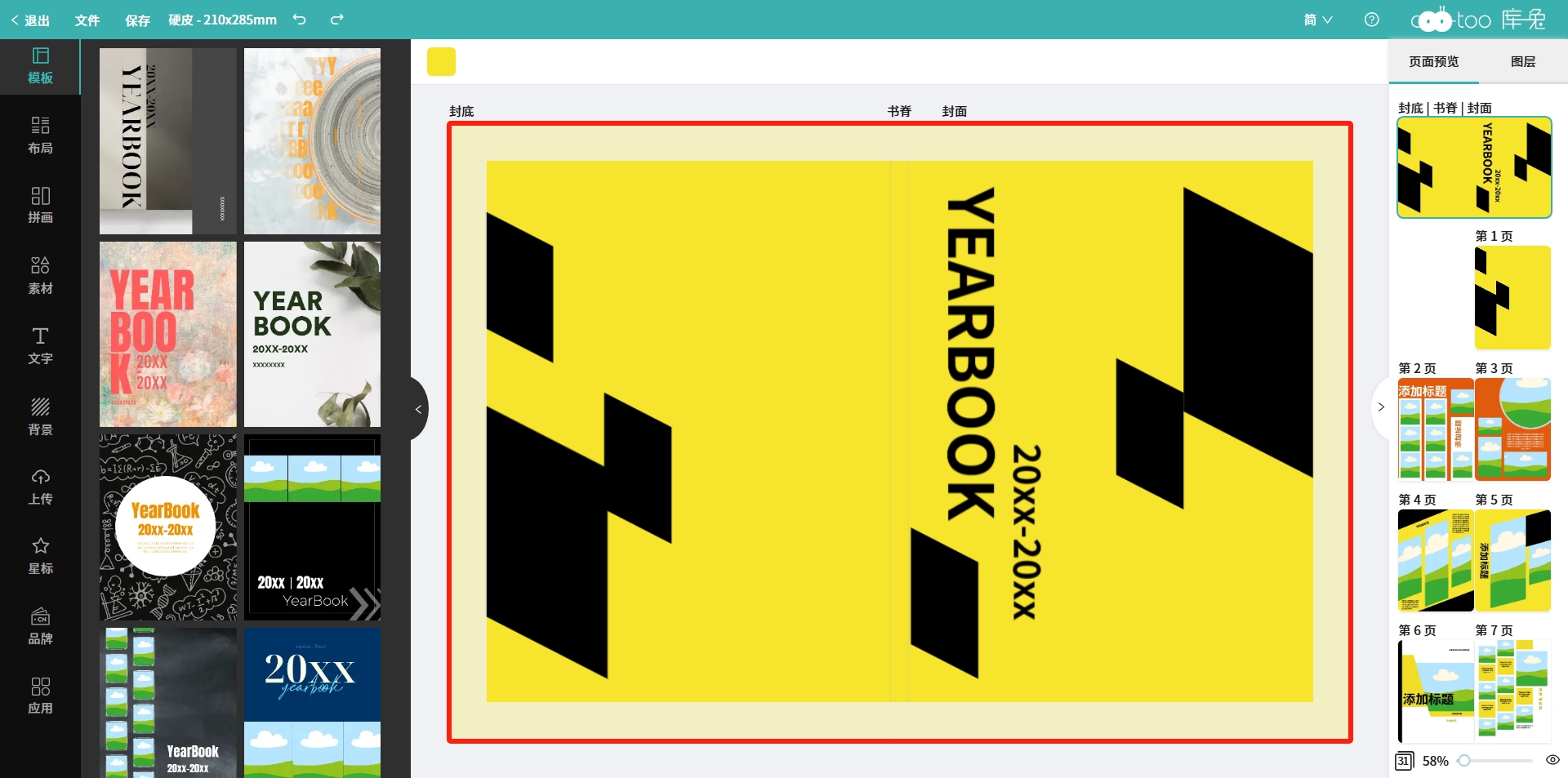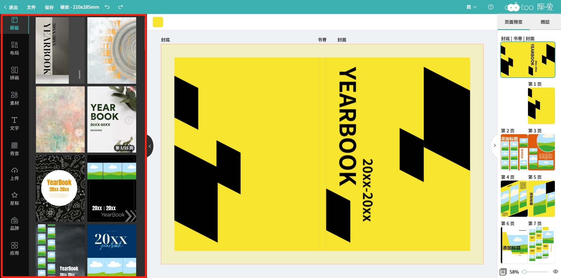 可以在这里完成上传照片、应用设计模板、选择页面版式等核心操作。